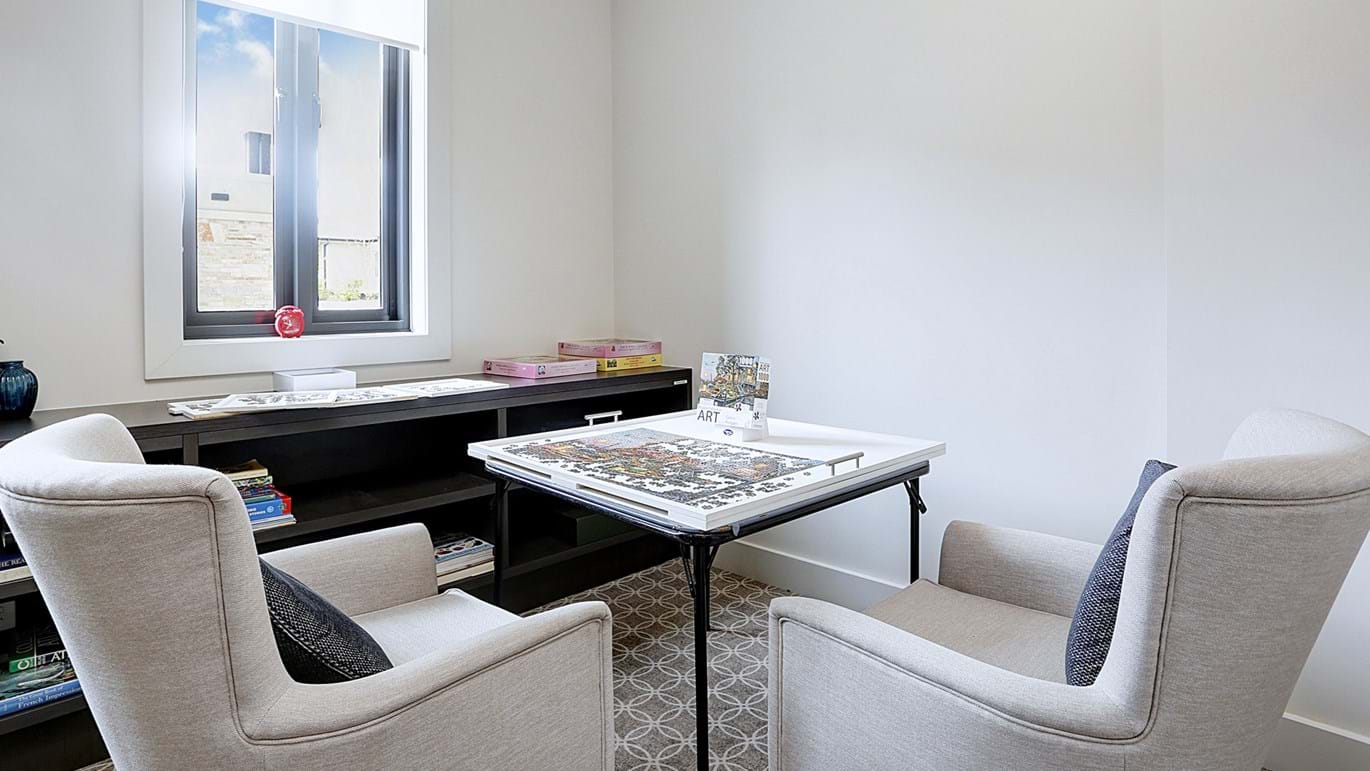 Our library also features games, and the residents' puzzle corner, where you will often find a resident or two working hard on a current jigsaw puzzle.