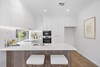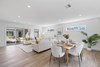 The modern kitchen in the heart of the residence, boasts exquisite stone benchtops and splash backs, complemented by top-of-the-line Bosch stainless steel appliances, including a wall oven, cooktop, rangehood, dishwasher, and microwave. The open-plan living area flows seamlessly, creating an ideal space for both intimate gatherings and entertaining.