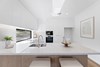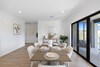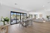 The modern kitchen in the heart of the residence, boasts exquisite stone benchtops and splash backs, complemented by top-of-the-line Bosch stainless steel appliances, including a wall oven, cooktop, rangehood, dishwasher, and microwave. The open-plan living area flows seamlessly, creating an ideal space for both intimate gatherings and grand entertaining.