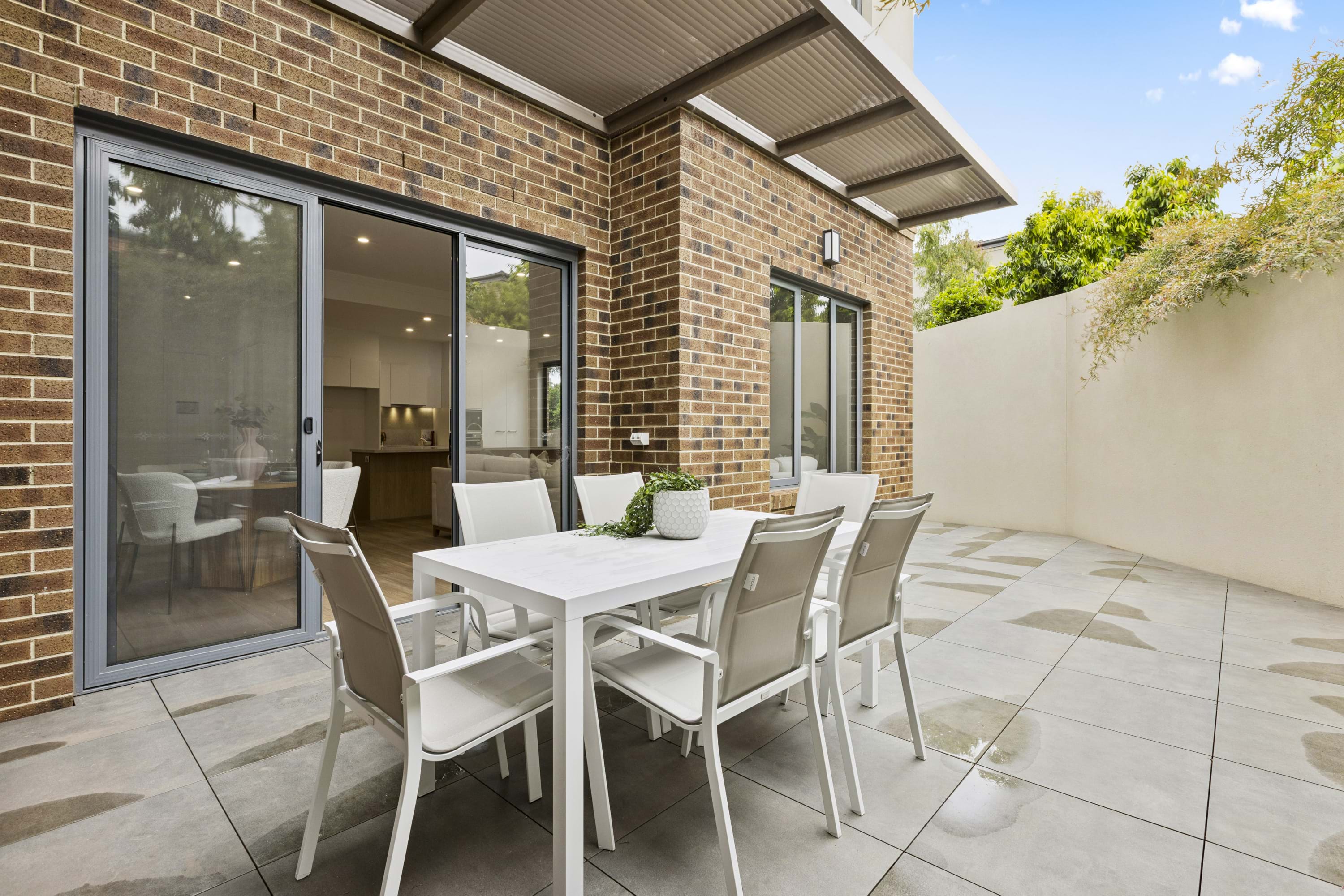 Step inside to find a bright and airy living space, highlighted by impressive high ceilings and sleek modern finishes. The open-plan design seamlessly connects to a private rear courtyard, an ideal setting for relaxation or entertaining guests.